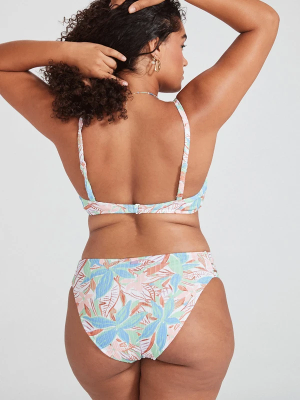Made of recycled rib swim fabric, these printed bikini bottoms have a fit slightly higher on the waist for better support and feature strappy side details for an extra pop of style.