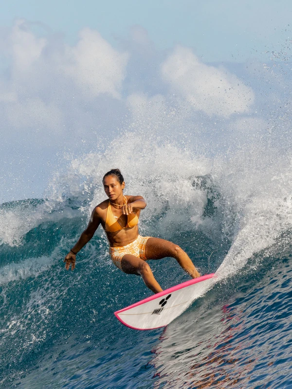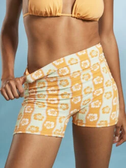 Made of textured recycled nylon, the Wavy Babe boyleg bikini bottoms have a fitted, boyshort shape with a high-rise waist and a secure no-slip waistband. Adding style with wavy lines and a floral print, these surf shorts are ready for your next day in the waves.